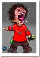 The exasperated father kept chasing the little monster (he literally had created), who for no explicable reason kept giving him ‘The Finger’.